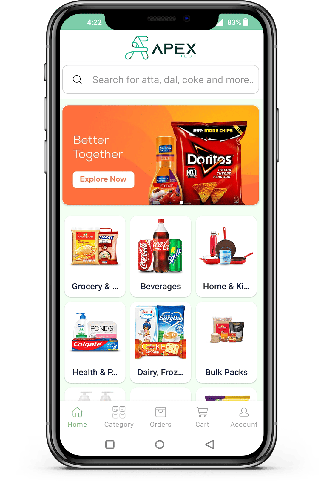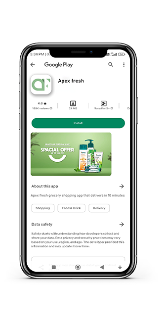 Here are the steps you need to take to download the Apex Fresh App: Install the Apex Fresh app from the Play Store on your phone. When the app is installed, you will be able to see an icon for it on your home screen. Click on the app icon called "Apex Fresh." Sign up by clicking "Register" and entering your name, phone number, and email ID to get the OTP and verify your KYC, such as your shop's name, address, and GST certificate. You'll then get an ID password. That's all; happy shopping!